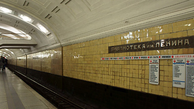 Вход в метро находится прямо в здании библиотеки имени Ленина. Эта станция называется Библиотека имени Ленина, то есть носит старое, советское, название библиотеки. Давайте с вами войдём в это метро и посмотрим одну из станций Московского метро.