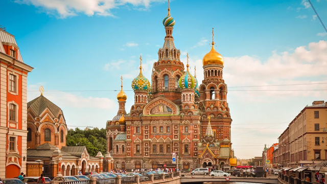 Нет-нет, мы не перепутали города. И это не собор Василия Блаженного. Но очень похож на него. Этот храм называется храм Спаса на Крови. На этом месте первого марта 1881 года произошло трагическое событие: революционеры-террористы убили царя Александра Второго. Его сын и наследник – русский царь Александр Третий – решил построить этот собор, чтобы оставить память о своём отце. В 1907 году этот собор был открыт. Он построен в русском стиле, поэтому очень похож на собор Василия Блаженного в Москве.