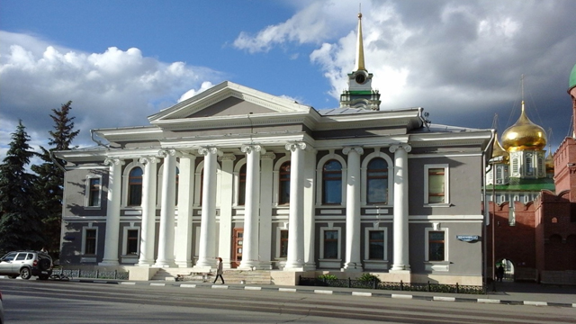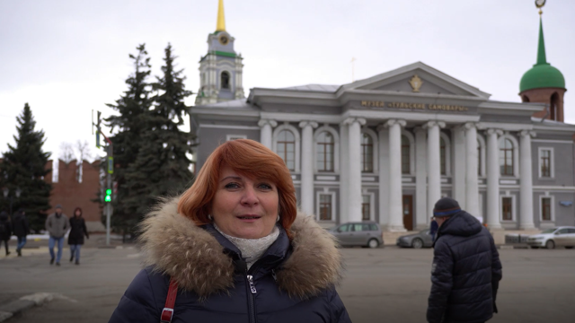 Тулу называют оружейной столицей России, потому что тульские кузнецы с давних времен начали делать разное оружие А в феврале 1712 года по приказу царя Петра Первого в Туле основали Тульский оружейный завод. И русская армия, конечно же, использовала оружие, которое делали на этом заводе. Когда Петр Первый приехал на Тульский оружейный завод, ему очень понравилось это оружие. И самые красивые образцы он приказал оставить на заводе на память. Так тульские оружейники начали собирать свою оружейную коллекцию. Но на самом деле сам музей открылся гораздо позже, только в 1775 году, при императрице Екатерине Второй. Когда она приехала в Тулу, она увидела эту большую красивую коллекцию тульского оружия и приказала открыть музей. Музей работал недолго. Потом всё это оружие перевезли в Москву, и какое-то время оно находилось в московском музее Оружейная палата. Целых сто лет тульские оружейники собирали новую коллекцию оружия, и наконец в конце девятнадцатого века они вновь открыли музей. Сначала этот музей находился на самом заводе, потом здание музея находилось в кремле. И наконец в 2012 году для прекрасной коллекции тульского оружия построили новое здание музея. Вы видите его вдалеке. Это здание напоминает шлем, древний шлем воина. Вот в таком прекрасном музее вы можете увидеть разные виды оружия, и не только русского.