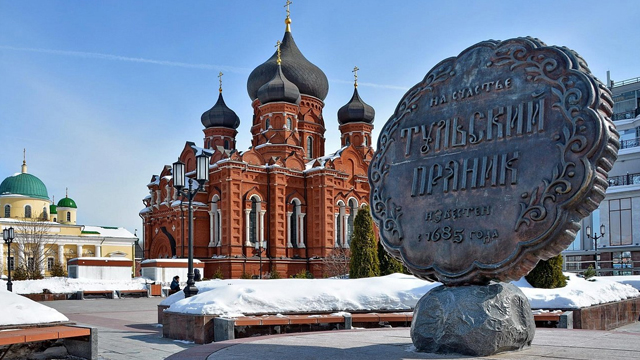 Сегодня наша экскурсия пройдет в городе Туле. Тула — это старинный русский город. Когда его основали, точно неизвестно. Но первое упоминание об этом городе встречается в старинных книгах в 1146 году. Это значит, что Тула была основана на один год раньше, чем Москва. Тула никогда не была самостоятельным княжеством. Тулой руководили то рязанские, то московские князья. Но в 16 веке Тула наконец вошла в состав Московского княжества. Тула находилась на окраине Московского княжества, и, конечно, город стал защитником на южной границе Московского княжества. И, чтобы город Тула стал сильнее и крепче, московские князья решили построить на этом месте надежную крепость — Тульский кремль.