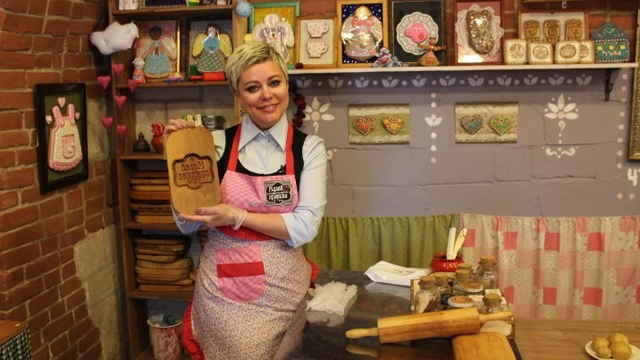 Мы с вами в пряничной мастерской. Сейчас вы можете увидеть, как же делают тульские пряники. Специальную форму смазывают маслом, тесто кладут на печатную доску, потом туда кладут мармелад или варенье и уже потом выпекают.