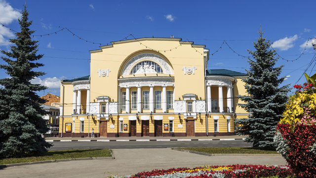 Это один из символов города Ярославля – первый русский драматический театр. Именно в Ярославле появился первый в России театр. Его создал ярославский купец Фёдор Волков в 1750 году. Это был первый русский профессиональный публичный театр. Русский, потому что здесь играли русские актёры. Профессиональный, потому что они получали за свою работу деньги. А публичный, потому что впервые в России в театр могли прийти любые люди. Просто покупали билет. Через 2 года императрица Елизавета Петровна, дочь Петра Первого, узнала об этом театре и пригласила Фёдора Волкова и его артистов в Петербург. Там они и остались. Но всё равно считается, что первый в России театр появился в Ярославле. И сегодня ярославский драматический театр – один из лучших в России. Приезжайте сюда, посмотрите спектакли этого театра – не пожалеете.